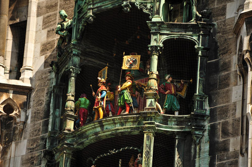 - El Reloj Glockenspiel: para disfrutar del show que da este reloj antiguo debes detenerte frente a él entre las 11 y las 12 del mediodía. Está en el edificio del Ayuntameinto de Munich y tiene una serie de figuras que entran y salen en un show de movimiento y música antiguo y encantador.
