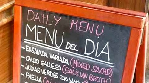 - Come el «Menú del Día»: es la mejor opción para almorzar. Se trata de un menú de lunes a viernes cuyo precio ronda los 10 euros y en general incluye entrada, plato principal, bebida, pan y un postre. No todos los restaurantes ofrecen este Menú del día.
