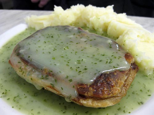 - Pie & Mash: bien típico de Londres, no falta en ningún menú por lo menos desde el siglo XIX. Pastel de carne con puré de patatas en una salsa que lleva agua de cocción de anguilas con mucho perejil. Algunos pubs lo venden por menos de 4 libras.