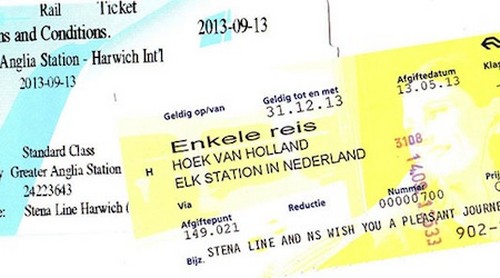 El viaje de ida desde cualquier estación Greater Anglia, en el este de Inglaterra, hacia cualquier estación Nederlandse Spoorwegen en los Países Bajos, cuesta 45 libras. Lo cierto es que resulta muy barato, si consideras lo que te cuestan los billetes de los trenes comúnes dentro de Inglaterra. El resultado de esta operación es que pagas 45 libras por el tren y nada por cruzar el Mar del Norte en la naviera Stena Line.