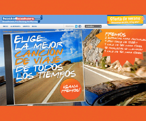 Este concurso está organizado por Hostel Bookers y tiene varios premios: entradas a festivales, 1 iPod Touch de 32 GB, un vale de 50€ para iTunes y algo más. Para participar solo tienes que elegir cuál es, a tu entender, la mejor canción para viajar y el grupo musical o artista solista que es su intérprete, datos que figuran en un listado de Top 10 que se publica en Facebook. Los fans tienen dos semanas para hacer la votación, expira la que viene, y las personas que hayan recomendado la canción que a su vez sea la mas votada entran en el sorteo.
