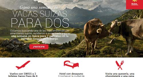 El concurso de viaje a Suiza empezó el 30 de junio así que tampoco es que hubo demasiado tiempo. Por eso, ¡a correr! El premio consiste en vuelos en Swiss para dos personas, el Swiss Pass de ocho días en primera clase para usar en toda la red de transporte público de Suiza, alojamiento en hoteles con desayuno, tres noches en Friburgo, dos noches en Gruyeres y dos noches en Murten y la visita a una chocolatería típica y a una quesería. ¿Qué tal?