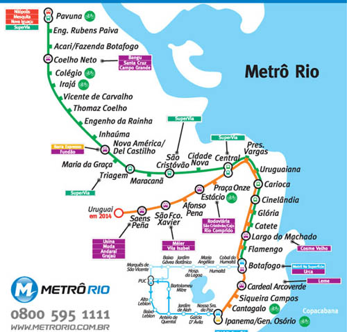 - Línea 2: une la estación Botafogo y la estación Pavuna en 51 minutos.