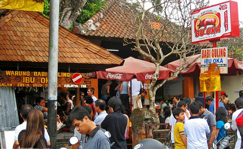 Ibu Oka Warung: está frente al Palacio Real y es un destino de locales y turistas. El plato mas llamativo es el Babi guling, un cerdo rostizado enorme que se corta y sirve en trozos junto con arroz, vegetales picantes, salsa e intestinos fritos. El restaurante abre a partir de las 10:30am y las mesas siempre se llenan rápido.