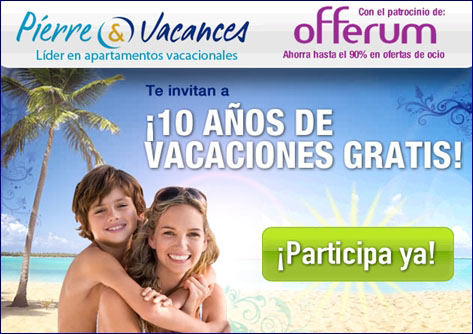 ¿Tienes vacaciones pero no dinero para disfrutarlas? Es un problema de muchos, hoy en día en que las cuentas y la crisis aprietan por demás. La opción a quedarse a pasar el verano en casa es tomarse unas vacaciones lo mas económicas posibles pero todavía mejor que eso es ganarse unas vacaciones en familia y no pagar un céntimo. ¿Cómo puedes lograrlo? Pues participando del sorteo que organiza Pierre & Vacances, la cadena líder en apartamentos vacacionales en todo Europa.